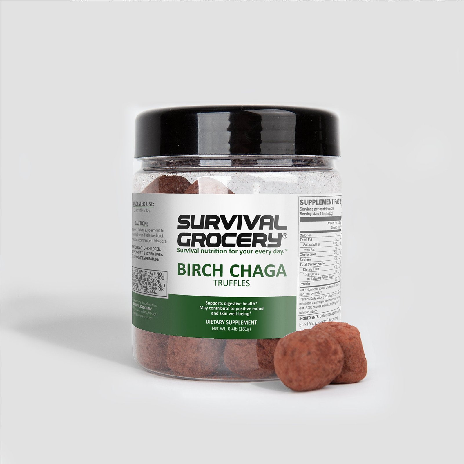 Suggested Use: 1 truffle a day. Do not use a dietary supplement to replace a complete and balanced diet. Do not exceed the recommended daily dose. Store at room temperature out of the reach of children.