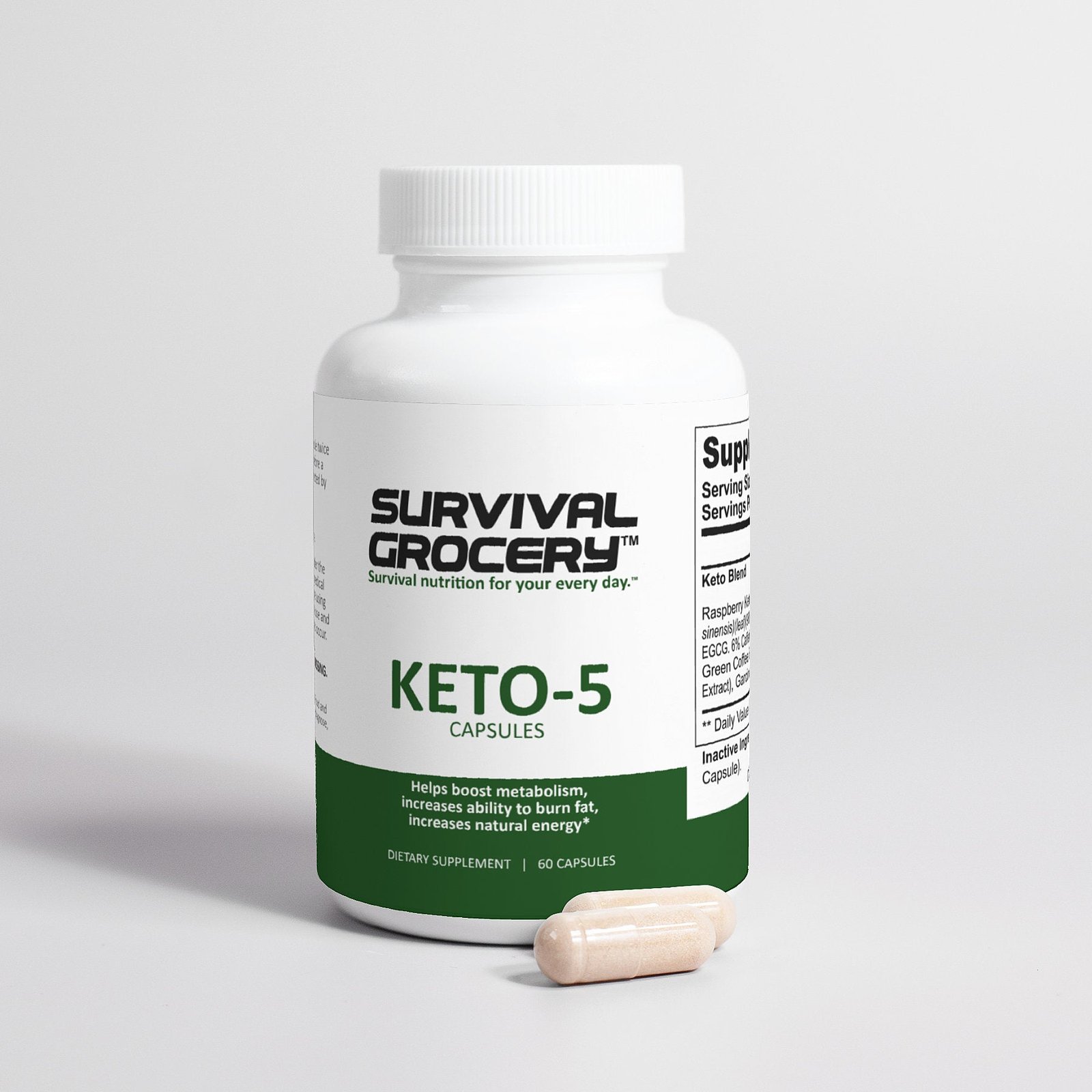 Ingredients: Keto Blend (Raspberry Ketone, Green Tea, Caffeine Anhydrous, Green Coffee Bean, Garcinia Cambogia (fruit), Cellulose (Vegetable Capsule).