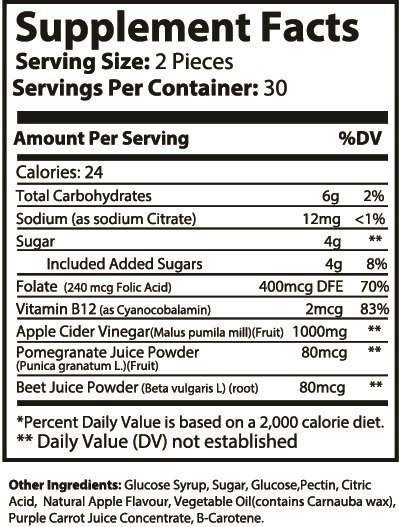 Tired of choking down harsh apple cider vinegar shots or struggling with digestive discomfort? Meet Pure Apple Cider Vinegar Gummies – the tasty, convenient, and powerful way to unlock the full benefits of apple cider vinegar without the unpleasant taste or hassle. No more struggling to swallow bitter pills or choke down liquid apple cider vinegar. Packed with 100% pure apple cider vinegar, essential B vitamins, and antioxidant-rich pomegranate and beet juice, these gummies are designed to support digestion, weight management efforts, and curb cravings. With only 2g of sugar, these gummies make an effortless and enjoyable addition to your daily health routine.