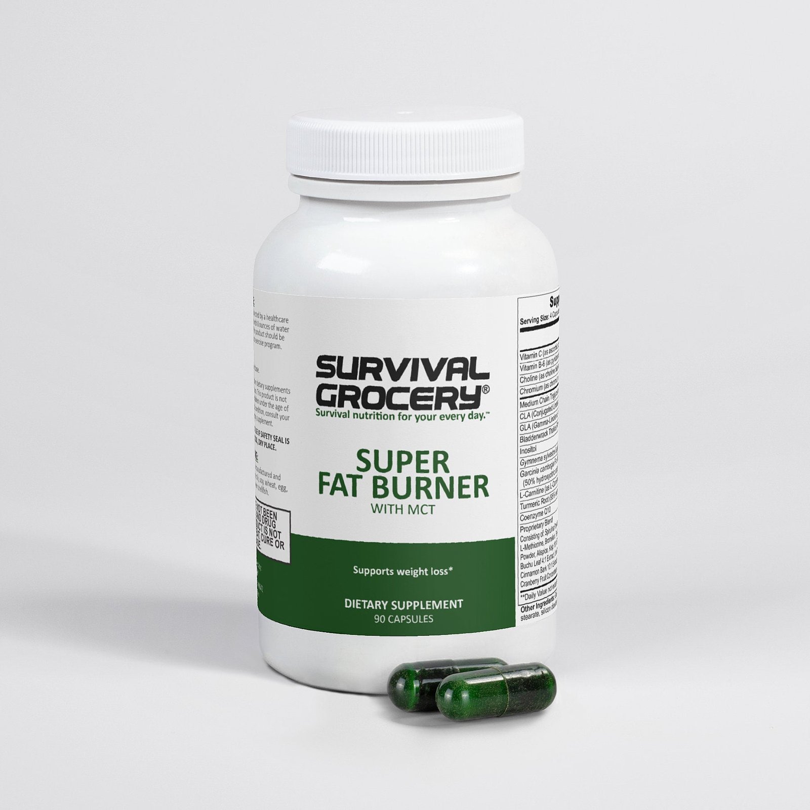 Super Fat Burner with MCT combines Vitamin C, Vitamin B6, Choline, Chromium, L-Carnitine, and medium-chain triglycerides (MCT) to deliver a healthy approach to fat burning and consequent weight loss.Â